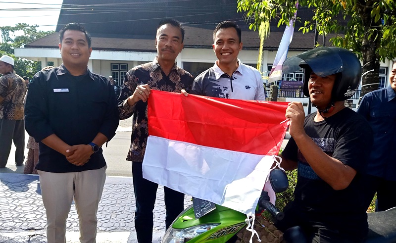“Tujuan dari pembagian bendera Merah Putih ini tidak lain adalah untuk menambah kecintaan kita selaku masyarakat Indonesia akan cinta tanah air dan bangsa indonesia,” kata Wabup Sugianto Panala Putra membacakan sambutan bupati.