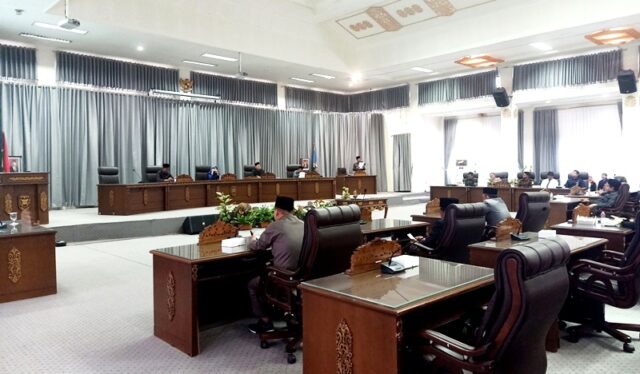 Ket foto : DPRD Kabupaten Barito Utara melaksanakan agenda rapat paripurna penyempaian APBD Perubahan tahun 2023 dan pengumuman pemberhantian Bupati dan Wakil Bupati Barito Utara periode 2018-2023, di gedung DPRD setempat, Senin 7 Agustus 2023.(foto: FK)