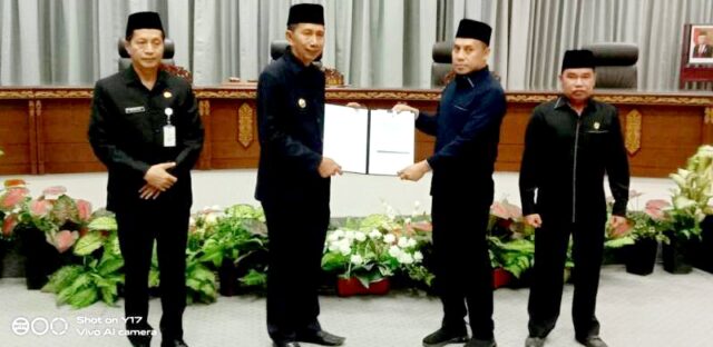 FAKTA5, MUARA TEWEH – Bupati Barito Utara, H Nadalsyah sampaikan jawaban Bupati Barito Utara atas pemandangan umum fraksi-fraksi DPRD Kabupaten Barito Utara pada rapat Paripurna III Masa Sidang III tahun 2023 terhadap Rancangan Peraturan Daerah Kabupaten Barito Utara tentang Perubahan APBD tahun anggaran 2023, di gedung DPRD setempat, Kamis 7 September 2023.