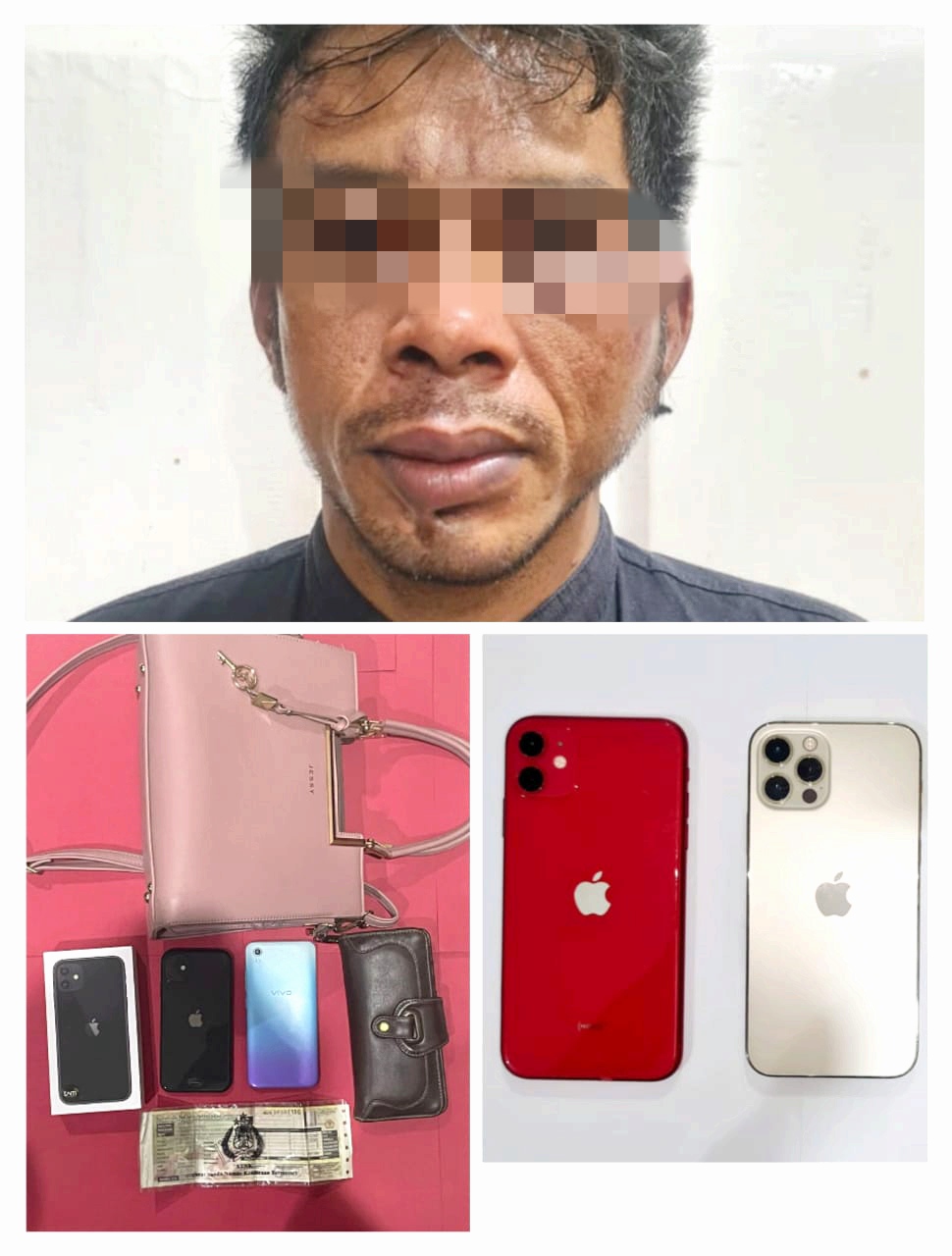 “Pelaku saat dimintai keterangan mengakui perbuatannya dan telah melakukan pencurian handphone di rumah Jl Yetro Sinseng Gg Gedangan belakang Dinas Pendapatan dan di Jalan Permata Biru Komp Borobudur dan dari pelaku petugas mengamankan barang bukti berupa HP, tas, dan jaket warna abu-abu,” kata AKP Wahyu.