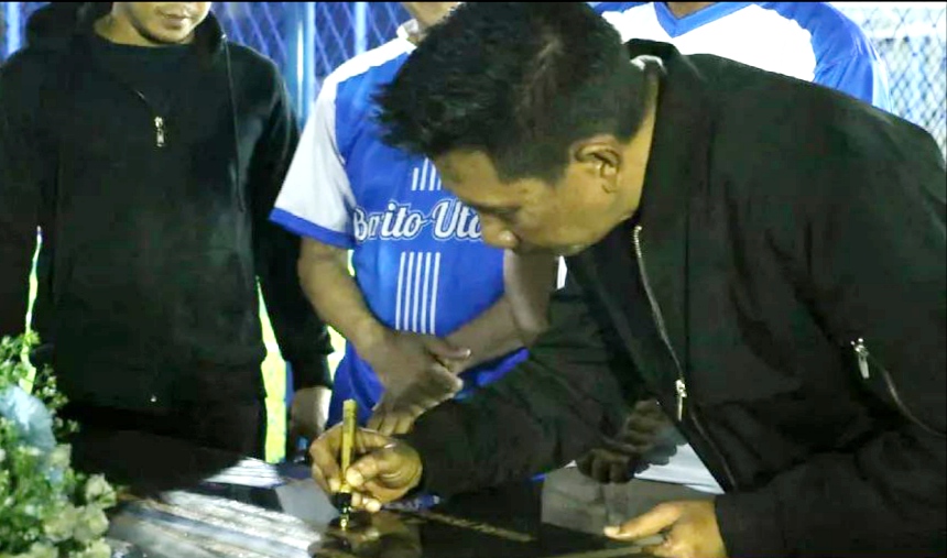 FAKTA5, MUARA TEWEH – Bupati Barito Utara, H Nadalsyah secara resmi meresmikan Lapangan Hijau Mini Soccer ditandai dengan penandatanganan prasasti dan pengguntingan pita, Rabu 20 September 2023 malam.