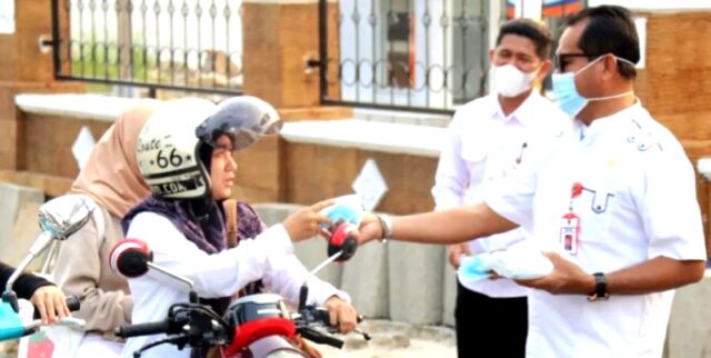 Pembagian masker ini dilaksanakan di depan Kantor Bupati Barito Utara dan masker diberikan kepada pengendara baik roda dua maupun empat yang melintas di Jalan A Yani.