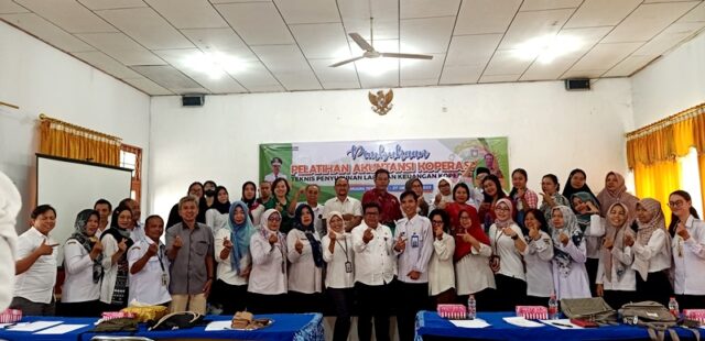Ket foto : Kadis Nakertranskop UKM Barito Utara, M Mastur didampingi Sekdis dan pejabat lingkup Disnakertranskop UKM foto bersama peserta pelatihan akuntansi perkoperasian, Rabu 25 Oktober 2023.(foto: FK)