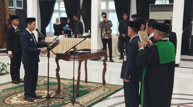 Kepada pejabat yang baru dilantik dan diambil sumpah, Pj Bupati mengucapkan selamat bekerja dengan harapan bahwa pejabat yang baru dilantik mampu membuktikan kemampuannya dengan menunjukkan prestasi kerja yang baik dimasa yang akan datang.