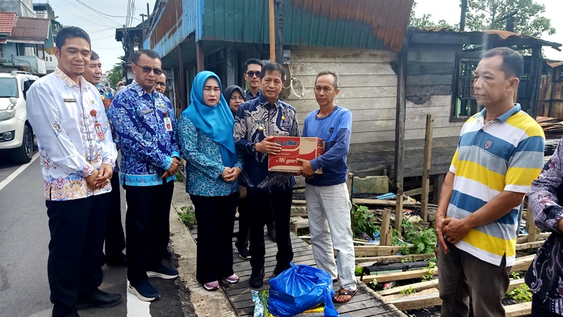 FAKTA5, MUARA TEWEH – Penjabat (Pj) Bupati Barito Utara, Drs Muhlis didampingi Ketua TP PKK Barito Utara menyerahkan bantuan kepada korban kebakaran di jalan Pangeran Antasari RT 01 Kelurahan Melayu Kecamatan Teweh Tengah, Kamis 23 November 2023.