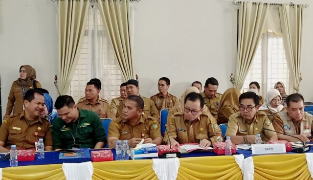 Ket foto : Kegiatan konsultasi publik rancangan awal RPJPD tahun 2025-2045 di aula BappedaLitbang.(foto: FK)