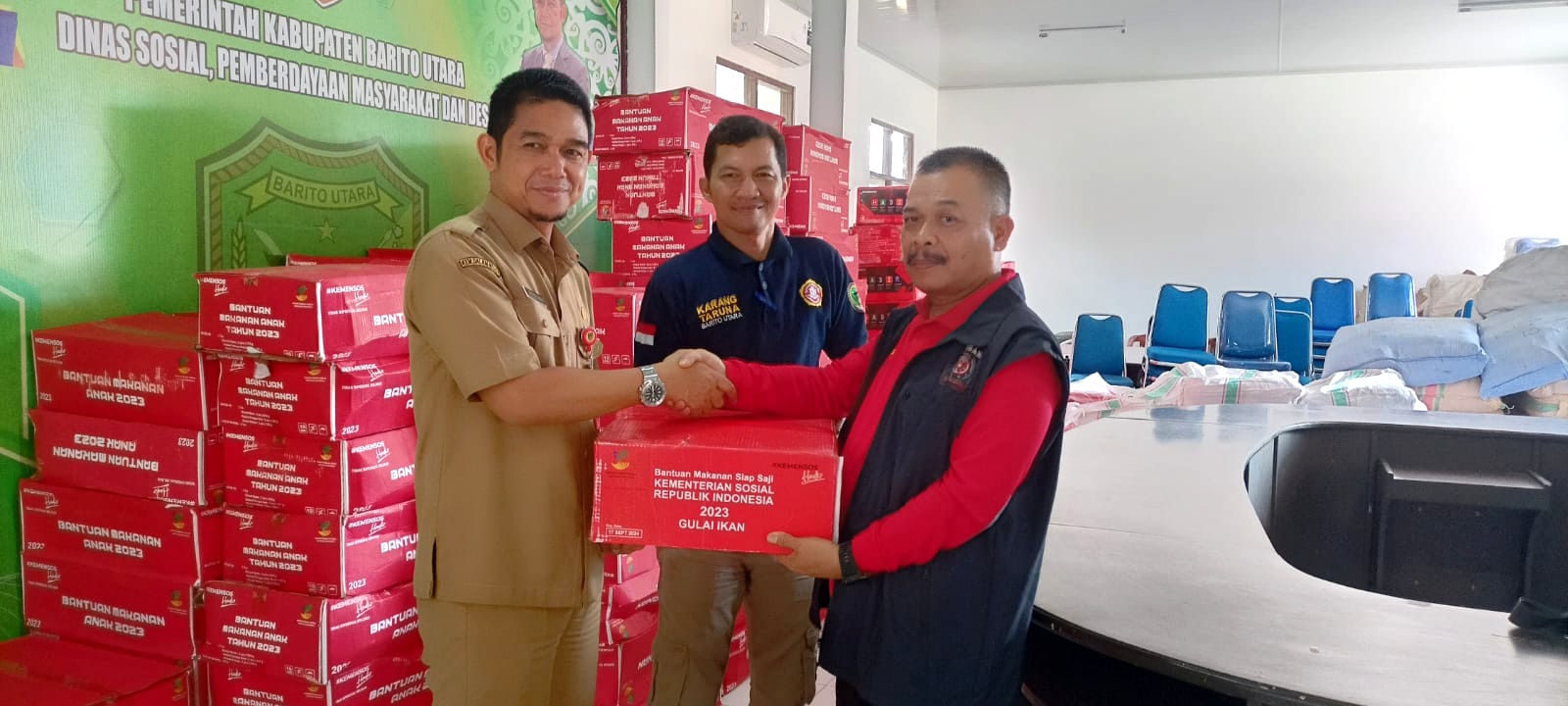 Bantuan ini diserahkan oleh Muhammad Haykal Al Hasni Perencana Ahli Muda kepada Kepala Dinas Sosial Pemberdayaan Masyarakat dan Desa (Dinsos PMD) Barito Utara, Suparmi A Aspian.