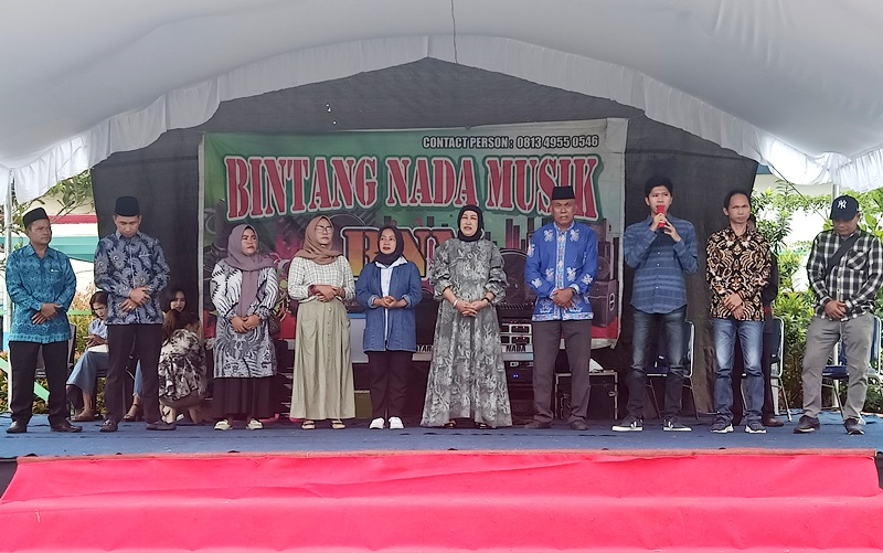 Komisari Utama PT MB, Ahmad Gunadi didampingi Ketua DPRD Hj Mery Rukaini, Wakil Ketua II DPRD Provinsi Kalteng, Caleg DPRD terpilih Patih Herman AB, dan Ardianto, Camat Teweh Selatan menyampaikan ucapan terima kasih kepada seluruh warga masyarakat di Barito Utara khususnya di Desa Bintang Ninggi I dan II pada acara syukuran di Desa Bintang Ninggi II, Jumat 8 Maret 2024.(foto: FK)