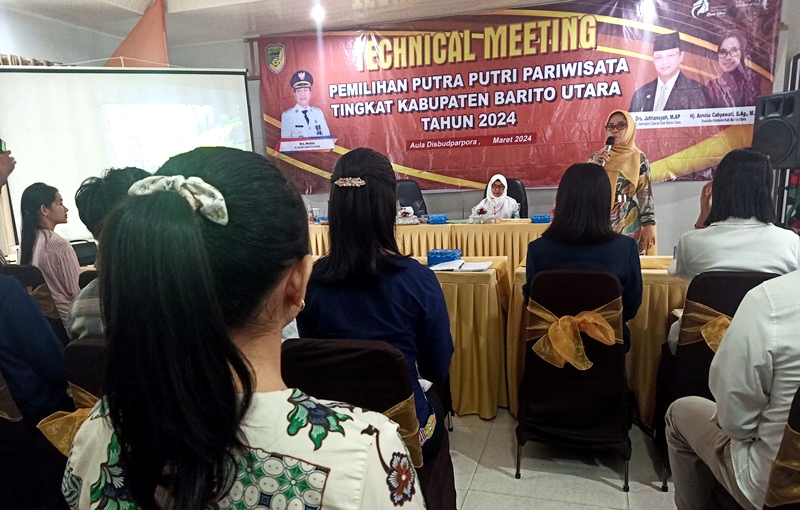 FAKTA5, MUARA TEWEH – Sebanyak 42 orang peserta putra dan putri Pariwisata Kabupaten Barito Utara tahun 2024 mengikuti pembekalan dan pemberian materi dari Dinas Kebudayaan, Pariwisata, Kepemudaan dan Olahraga (Disbudparpora) Kabupaten Barito Utara di aula Disbudparpora setempat, Sabtu 9 Maret 2024.
