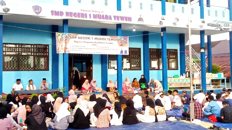 FAKTA5, MUARA TEWEH – Jajaran tenaga pendidik di Sekolah Menengah Pertama Negeri (SMPN) 1 Muara Teweh, Kabupaten Barito Utara memberikan penguatan pendidikan karakter bagi siswa siswinya di halaman sekolah setempat, Sabtu petang 16 Maret 2024.