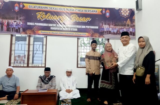 FAKTA5, MUARA TEWEH – Dalam rangka mempererat jalinan tali silaturahmi keluarga besar Dinas Perumahan Rakyat, Kawasan Pemukiman dan Pertanahan Kabupaten Barito Utara (Perkimtan Barut) melaksanakan buka puasa bersama di Mushola Ar Raudhah Dinas Perkimtan setempat, Kamis 28 Maret 2024.