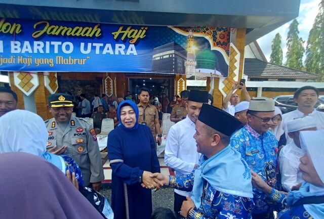FAKTA5, MUARA TEWEH – Penjabat Sekretaris Daerah (Pj Sekda) Kabupaten Barito Utara, Drs Jufriansyah melepas keberangkatan sebanyak 143 calon jamaah haji Kabupaten barito Utara yang gabung dalam kelompok terbang (kloter) tiga yang akan berangkat dari bandara Syamsudin Noor Banjarmasin menuju Madinah.