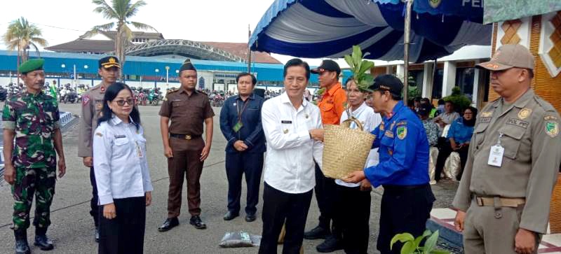 Adapun bibit tanaman yang diserahkan sebanyak 600 bibit yaitu mangga, sawo, Kelengkeng, cabe, jambu air, jambu kristal, petai, nangka, nangkadak, manggis, dan pinging hutan.(FK)