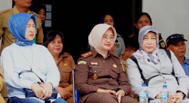 Ketua DPRD Barito Utara, Hj Mery Rukaini didampingi Kepala Kejaksaan Negeri Barito Utara dan anggota DPRD Rujana Anggraini saat menghadiri pembukaan operasi pasar murah di wilayah Kecamatan Teweh Timur, Selasa 4 Juni 2024 lalu.(foto: FK)