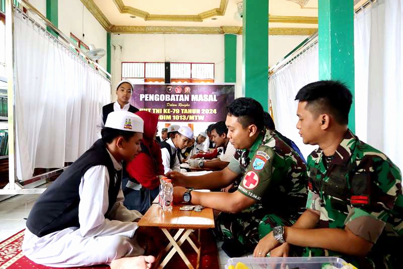 FAKTA5, MUARA TEWEH – Dalam rangka peringatan Hari Ulang Tahun (HUT) TNI ke 79 tahun 2024, Kodim 1013 Muara Teweh melaksanakan kegiatan pengobatan massal dan pembagian sembako yang dilaksanakan di Pondok Pesantren Yasin Kelurahan Jingah Kecamatan Teweh Baru, Sabtu 21 September 2024.