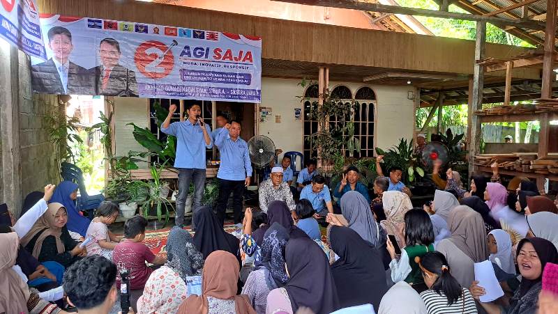 Kampanye dialogis atau tatap muka dengan ratusan warga, pasangan nomor urut 2 yang diusung oleh Partai Demokrat, PDIP, Gerindra, Golkar,Nasdem, Partai Buruh, Gelora, Garuda dan Partai PKN juga menyampaikan visi misi untuk lima tahun kedepan.