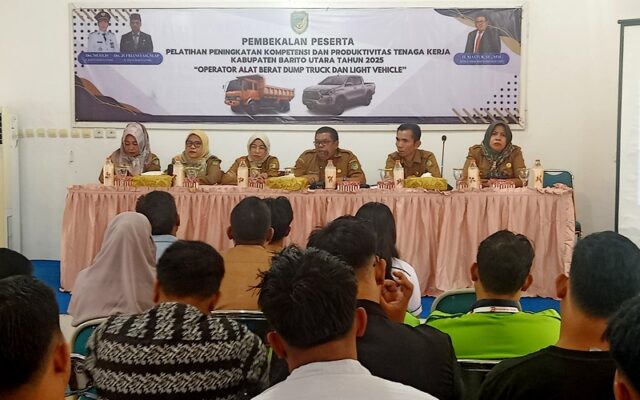 FAKTA5, MUARA TEWEH – Dinas Tenaga Kerja, Transmigrasi, Koperasi, dan UKM (Disnakertranskop UKM) Kabupaten Barito Utara menggelar kegiatan pembekalan bagi peserta Pelatihan Peningkatan Kompetensi dan Produktivitas Tenaga Kerja.
