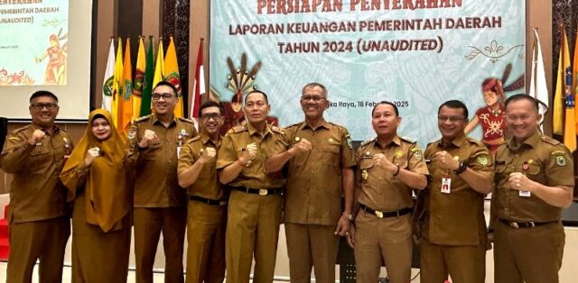 FAKTA5, MUARA TEWEH – Pj Sekda Barito Utara, Drs Jufriansyah didampingi oleh Inspektur dan Kepala BPKA Barito Utara, menghadiri acara persiapan penyerahan Laporan Keuangan Pemerintah Daerah (LKPD) Unaudited di Auditorium BPK RI Perwakilan Provinsi Kalimantan Tengah, Selasa 18 Februari 2025.