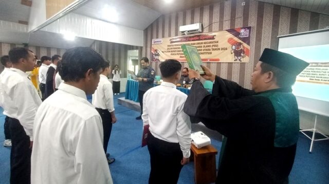 FAKTA5, MUARA TEWEH – Badan Pengawas Pemilu (Bawaslu) Kabupaten Barito Utara resmi melantik Panitia Pengawas Pemilu Kecamatan (Panwascam) dari sembilan kecamatan se-Barito Utara dalam rangka persiapan Pemilihan Kepala Daerah (Pilkada) Tahun 2024, pasca putusan Mahkamah Konstitusi (MK) Nomor 313/PHPU.BUP-XXII/2025.
