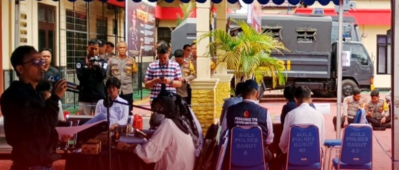 FAKTA5, MUARA TEWEH – Ketua Divisi Teknis Penyelenggaraan Komisi Pemilihan Umum (KPU) Barito Utara, Lutfia Rahman, menjadi narasumber dalam acara simulasi pengamanan Tempat Pemungutan Suara (TPS) dan proses pemungutan suara untuk Pemungutan Suara Ulang (PSU) hasil Putusan Mahkamah Konstitusi (MK) yang akan digelar pada Rabu, 6 Agustus 2025 mendatang. Acara ini berlangsung di Halaman Polres Barito Utara dan dihadiri oleh anggota kepolisian serta berbagai peserta terkait.