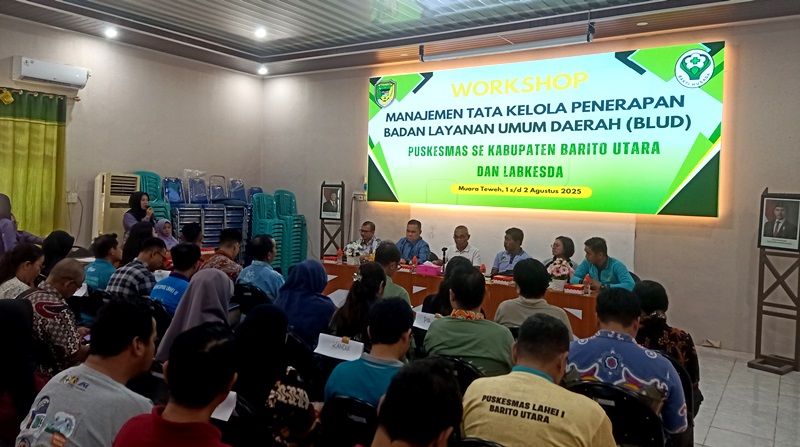 FAKTA5, MUARA TEWEH – Pemerintah Kabupaten Barito Utara melalui Dinas Kesehatan menyelenggarakan Workshop Manajemen Tata Kelola Penerapan Badan Layanan Umum Daerah (BLUD) bagi seluruh Puskesmas se-Barito Utara. Kegiatan ini digelar selama dua hari, Jumat hingga Sabtu (1–2 Agustus 2025) di Ruang Pertemuan Dinas Kesehatan setempat, Jumat 1 Agustus 2025.