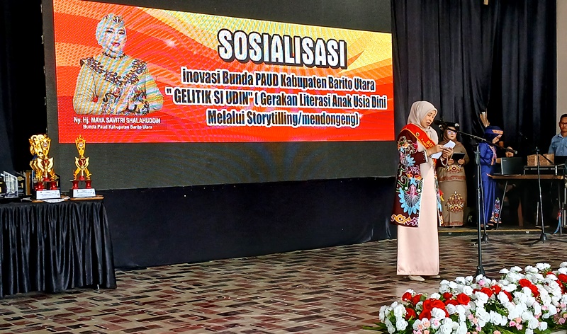 Bunda PAUD Kabupaten Barito Utara, Hj Maya Savitri Shalahuddin menyampaikan apresiasi mendalam atas langkah progresif Dinas Pendidikan dalam mendukung program revitalisasi bahasa daerah.
