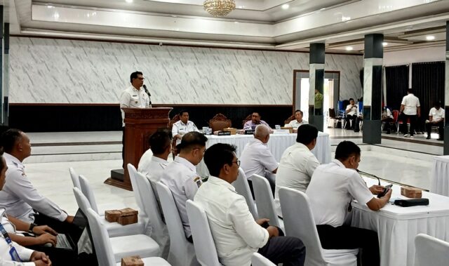 Bupati Barito Utara, H Shalahuddin saat memberikan sambutan pada acara Audiensi dan Sinergi P4GN yang digelar di Gedung Balai Antang Muara Teweh, Rabu 11 Februari 2026.(foto: FK)