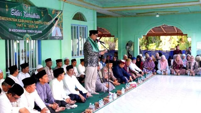 FAKTA5, MUARA TEWEH – Kegiatan Safari Ramadan Pemerintah Kabupaten Barito Utara kembali berlanjut. Memasuki titik kunjungan ke tujuh, rombongan pemerintah daerah melaksanakan buka puasa bersama masyarakat di Masjid Al Muhajirin, Desa Tawan Jaya (SP1), Kecamatan Teweh Selatan.